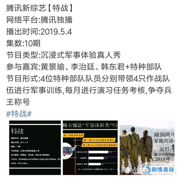 而目前这档节目暂时没有下一季的打算,而腾讯打造了一档类似题材的综艺叫做《特战》,已经定档在2019年5月4日上线。这档节目是沉浸式军事体验真人秀,确定播出平台在腾讯视频独播,一共是10期的内容。