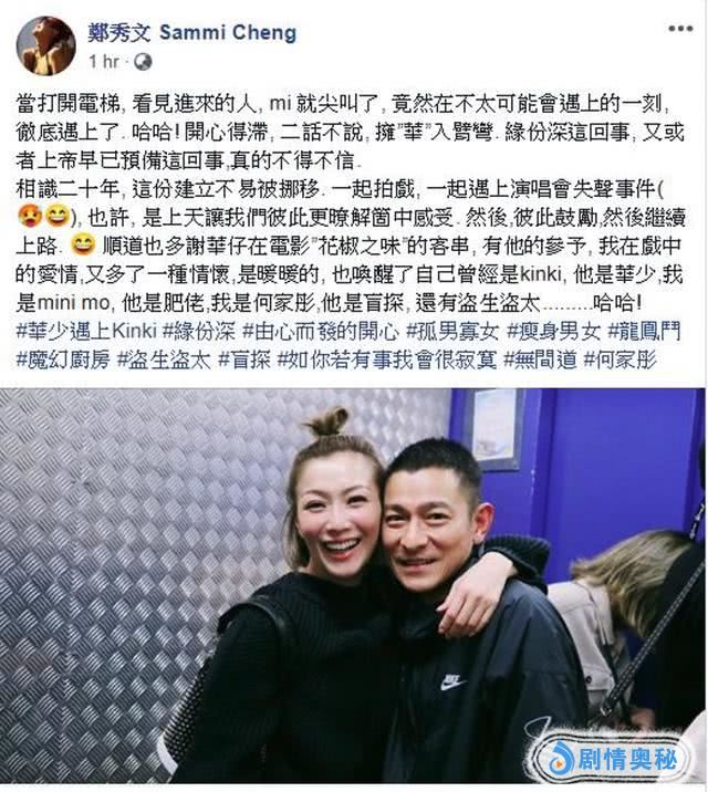 3月23日郑秀文就在社交平台上上载了她与刘德华偶遇后的合照,合照中的两人非常亲密,毫不避讳地脸贴脸,不会有人会因此觉得奇怪、尴尬,这反倒是力证了两人的情感很深厚。而除了上传合照,郑秀文还用心写下了一大段文字,描述了自己与刘德华偶遇的心情,并分享了两人之间的情谊,这又再次证明了两人之间的感情很好。