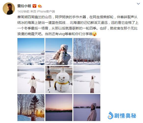 今日(3月26日),许婧也在微博晒出一组在北海道拍摄的游客照,并附文:“摩周湖四周幽兰的山峦,阿伊努族的手作木器,在网走搭乘邮轮,伴着碎裂声从结冰的海面上驶出一道蓝色弧线… 北海道的记忆鲜活又遥远,远的是它定格了上一个冬季最后一场雪,从那以后就是崭新的一轮四季。也好,就收官在那个无比浪漫的晚霞天吧。”