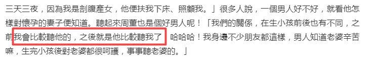 说到这里,昆凌也不忘透露自己生孩子前后与老公周杰伦关系的变化,生孩子前昆凌会比较听老公周杰伦的,但是生了孩子后就是老公周杰伦比较听她的,因为经历过老婆怀孕生子更加明白她的辛苦,所以周杰伦也是和很多男人一样,在昆凌生完小孩后对她更加呵护,事事听老婆的。你羡慕这样的昆凌?