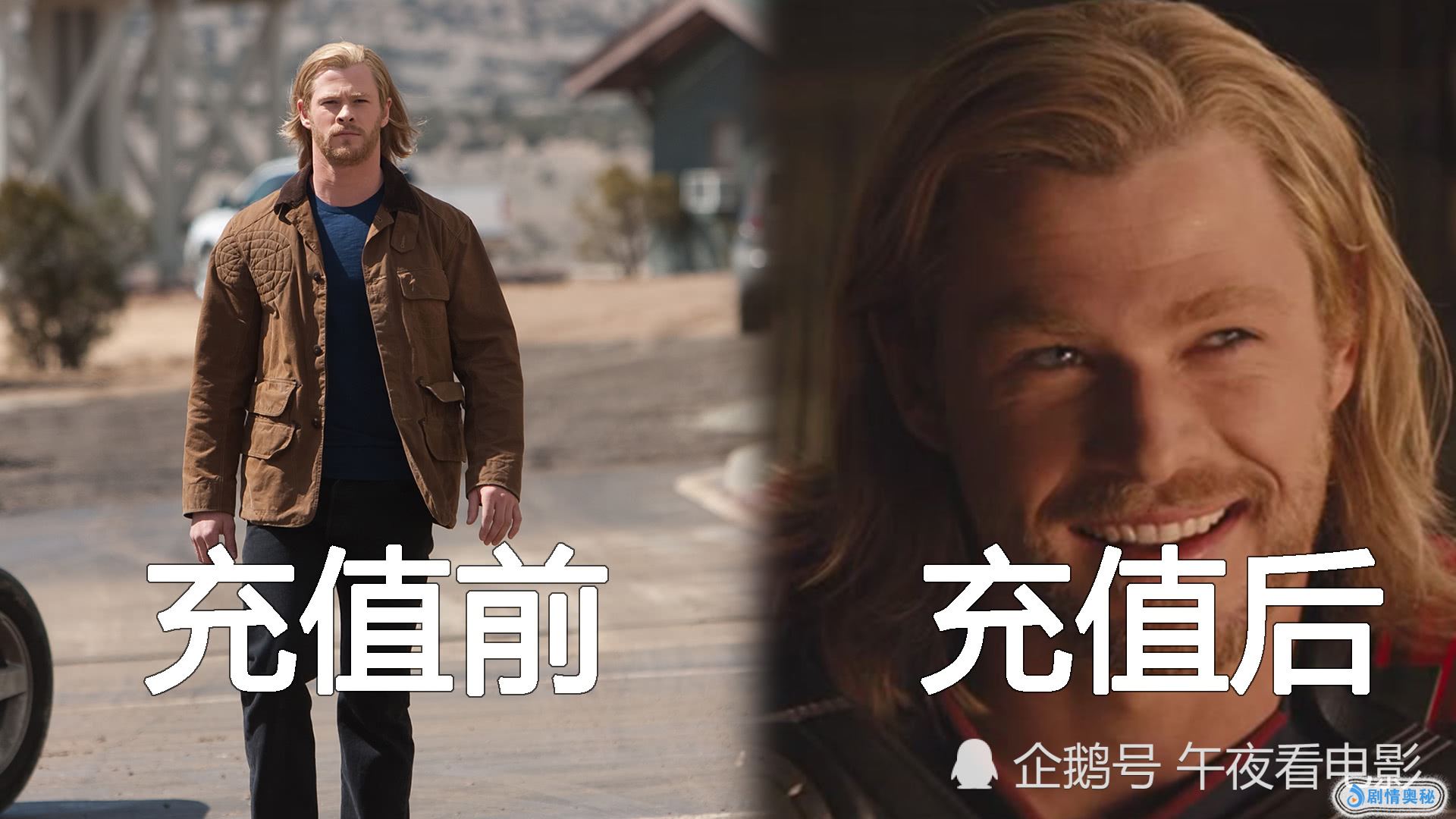 再看看雷神索尔,雷神也有欠费的时候,在雷神1这部电影中,雷神被奥丁流放到地球,不仅失去了雷神之锤,还失去了雷神之力,成为了一个普通人,而相比充值后的雷神,重获雷神之力和锤子的雷神,可是变身大不一样了!