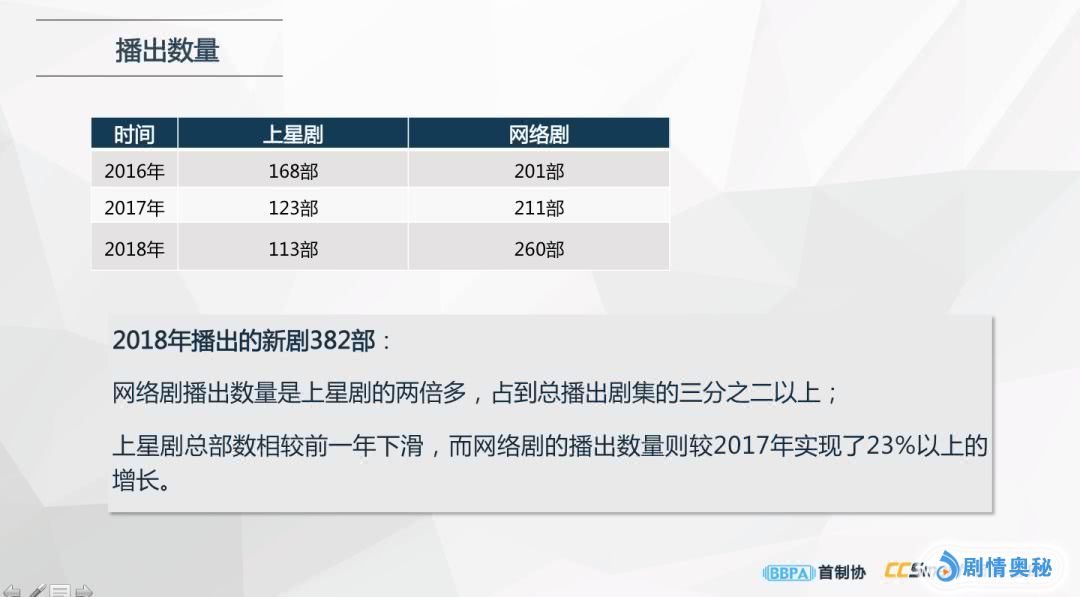 2018年,全网流量达6442亿。单部电视剧的播放量达到181.8亿,高于2017年。然而,播放量破50亿的作品只有四部。整体来说,网络剧的质量有所提升,上端的剧作在制作上已经达到了非常高的水平。