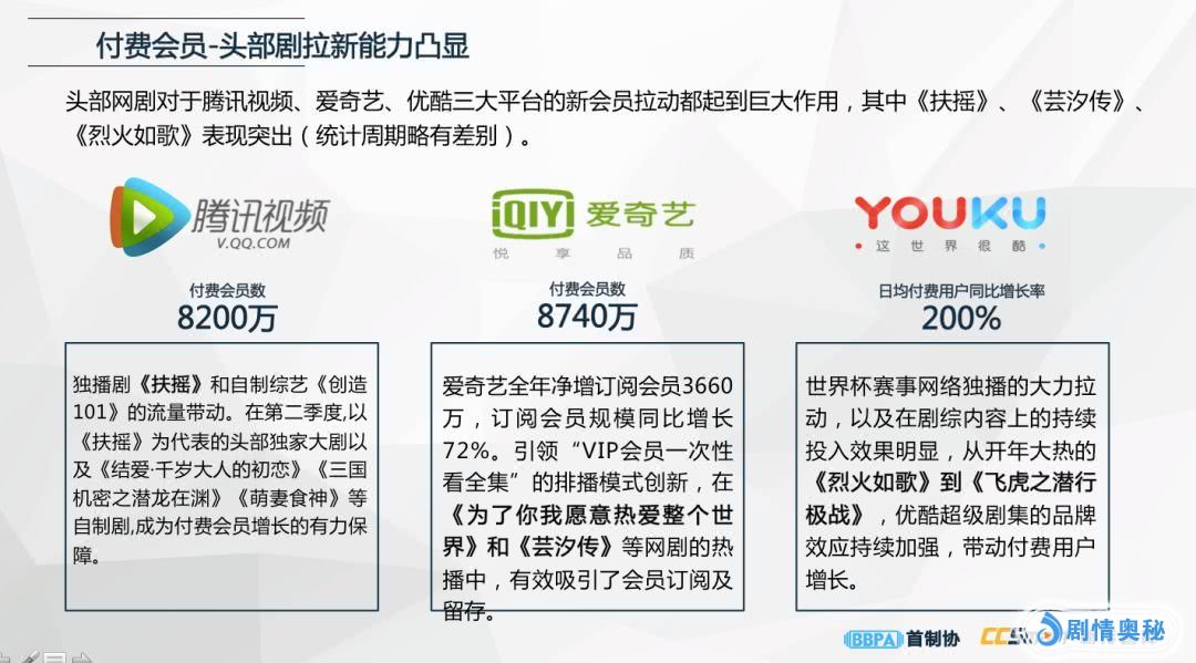 随着短视频、竖屏剧等新型视频剧在内容生产和流通过程出现,以及5.89亿使用移动终端观看视频的用户,使得视频平台越来越重视各自的付费会员,三家视频平台的付费会员各自都有八千万以上,在大的付费观看模式下,很多细分的模式也正在出现。未来,互联网提供给电视剧的观看模式越来越多,形态和模式也会越来越多。