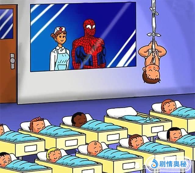 我们都知道小蜘蛛的本事就是用自己的蛛丝飞檐走壁,所以他的儿子即使是个婴儿,也会倒挂这种神奇的能力,看来以后家里可以省下一张床了。
