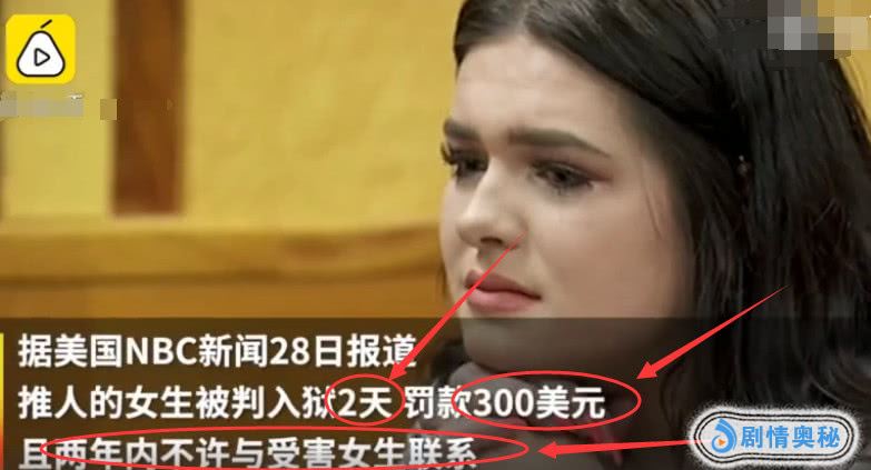 可是在法院判下来之后却宣布了推人下水的这位女生仅仅只被判入狱两天,而且罚款仅仅只有300美元,相当于我们国内人民币2014块钱,甚至还说两年内不许与受害女生联系,怎么会有这种惩罚呢?(本文仅供娱乐)