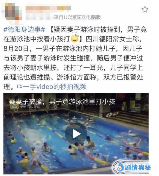 开始,有微博账号爆料:怀疑妻子被碰,男子竟在泳池打小孩。