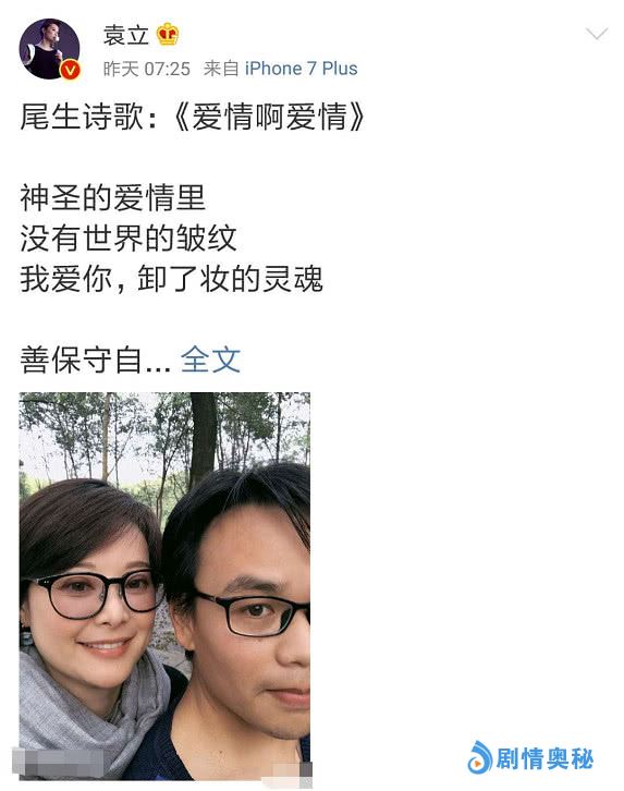 新婚的袁立就像是正处在热恋期的小情侣一样,内心里的喜悦总是一不小心就溢了出来。3月30日,袁立又在微博上贴出了老公梁太平写的另一首是诗,创作时间离现在还非常近,写于3月14日,内容同样和爱情有关。