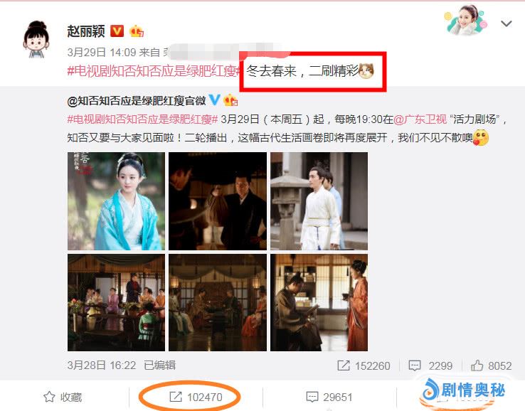 3月29日,31岁赵丽颖当妈后,又亲自发文官宣好消息,粉丝:终于出现了。赵丽颖在自己的微博中图更新了动态,直言:“冬去春来,二刷精彩”,一开始的时候还不知道她要表达的是什么意思,后来看了下面的内容才知道,原来赵丽颖是在为自己之前的作品《知否知否应是绿肥红瘦》做宣传来着。