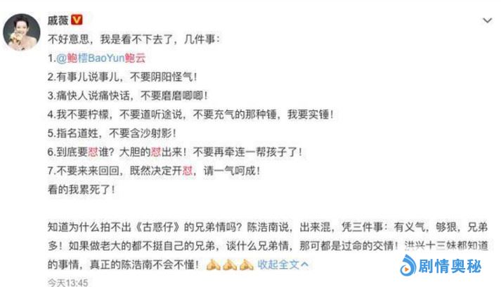 这边刚撕完人,另一个队伍也不想让啊,自然是要开撕的了。双方在网上各种发长文,各种吐槽和怼。甚是也有公开说,在节目上很有礼貌,但是私下里对人很不客气什么的。你撕完他撕,大家都有各种料再爆。等到后来影响过大,节目组也不能呆住了,直接还出场解释,说是节目出现的问题,都是剪辑的错。最后弄的连编剧组都出来发文解释了,这场撕逼可以说是相当的精彩了。