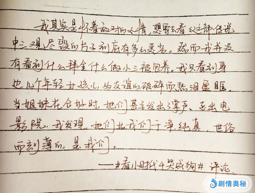 不过小编还是想要和大家一起说一说那些真正的热评,“我其实是怀着敌对的心情,想要去看这部传说中三观尽毁的片子到底有多么恶劣,然而我并没有看到什么拜金什么小三被包养,我只看到了身边几个年轻的女孩为友谊的破碎而热泪盈眶,当姐妹花好好吃,他们谁知发出了掌声,电影院我发现,他们比我们干净纯真,世俗而刻薄的是我们。”这是曾经小编看到的一个小时代中的一个评论。