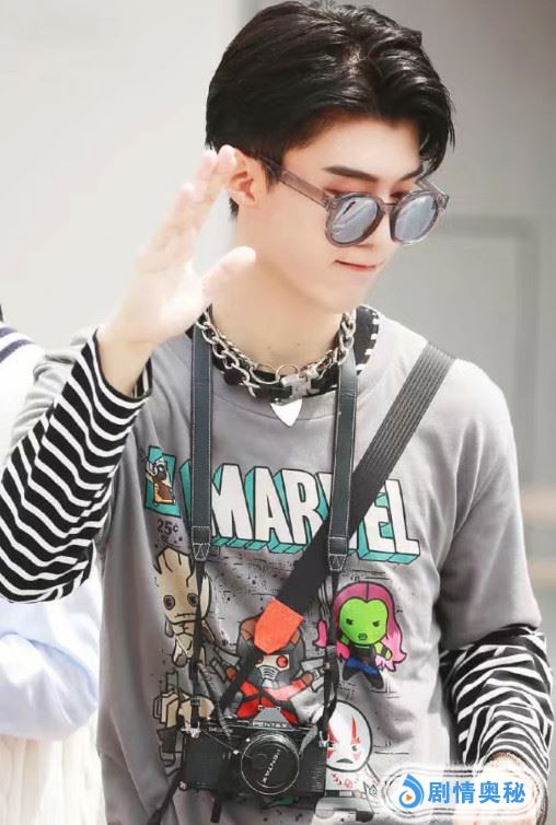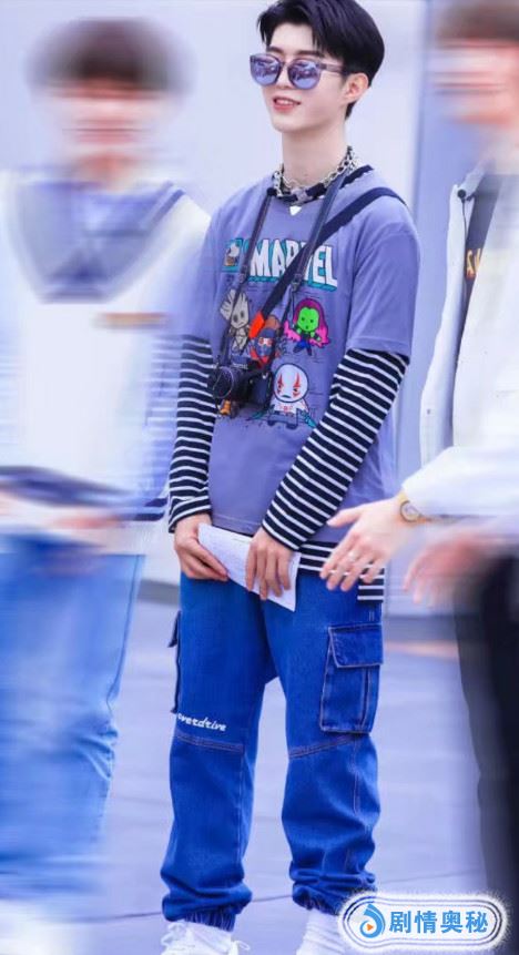 他的裤子有种儿童裤子的设计风格,大粗裤子搭配休闲风的上衣,就很“吃”身高了,不仅黄明昊喜欢穿大粗裤子,范丞丞也很喜欢这么穿。