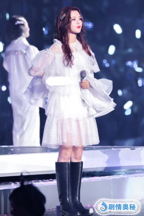 大家可以看到她穿了一个白色的纱裙,而且头发上也带了最近非常流行的发卡,这样的造型整体看下来也是非常的潮流的,大家也都知道杨超越他的脸就是非常的精致完美的人,也做了一个非常美的一个发型,而且加上她的这身衣服是非常的漂亮,在这个组合当中也是非常的耀眼,就像是从漫画当中走出来的美少女。