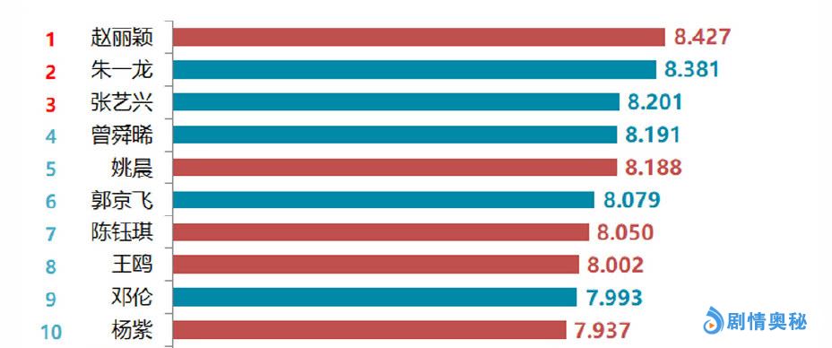 我们最后看到的是榜单第4名~第10名,排在张艺兴后面的七位电视演员依次是领衔主演新版《倚天屠龙记》的曾舜晞、领衔主演《都挺好》的姚晨、郭京飞、陈钰琪、王鸥、邓伦,以及杨紫,让我们再次恭喜上榜的十位电视演员,你最期待与其中哪位电视演员相遇呢?