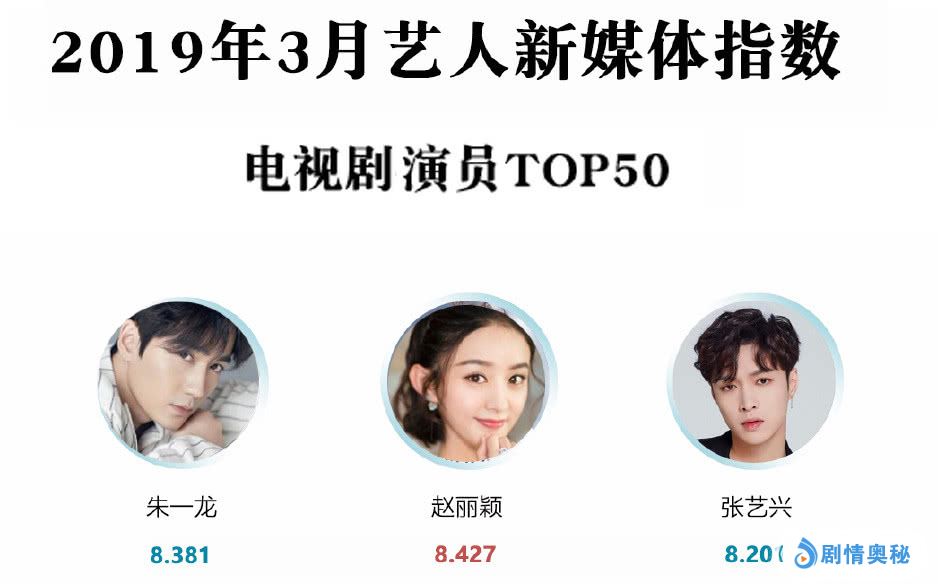 与赵丽颖和朱一龙相比,3月的“小绵羊”张艺兴要活跃许多,由张艺兴领衔主演的都市探险剧《黄金瞳》在3月火热更新,由张艺兴担任主咖的新综艺《青春有你》和《极限挑战》还在火热录制中,在影视剧和综艺节目的双重曝光下,位列第三的张艺兴热度飙升,值得肯定。