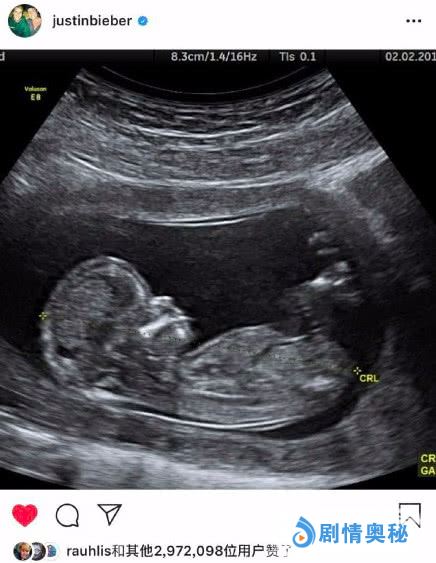 如果不是用了第三张照片来澄清,恐怕大家都要被骗过去了~在比伯公开的第三张照片中,B超中原本的婴儿被换成了狗狗,也算是给大家交待了怀孕只是愚人节的玩笑。但海莉那张,真的很真啊!