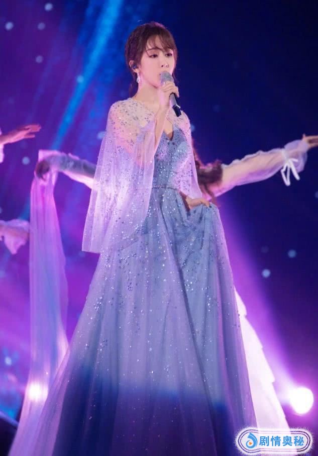 这一套蓝色系的长裙就像是90斤,而且款式也差不多,她身穿一件蓝色的半透纱裙,肩部与袖子都是透明的纱质面料,显得清透有灵气!还亲切的被粉丝们称为是锦觅本人现身了,在台上唱了一首《不染》,很衬意境。