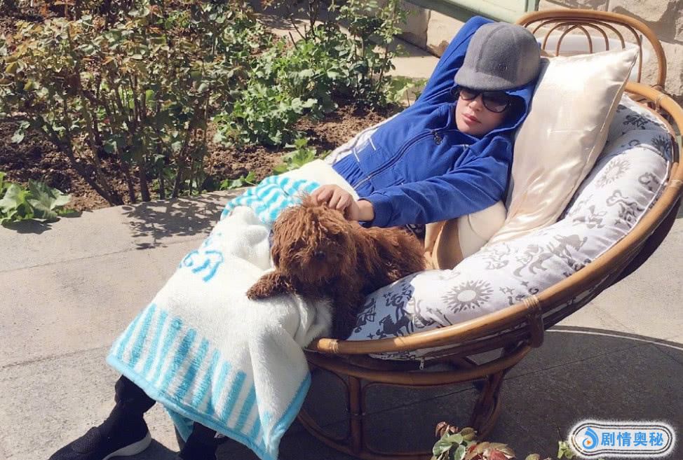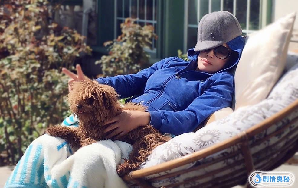 好不容易从忙碌的工作中停下来休息的刘晓庆,对于这难得的休闲时光也是十分享受,躺在竹椅上,一手抱着狗狗,一手对镜头比V,心情大好。户外的阳光想必也是十分舒适了,所以,就连小狗狗都一动不动的趴在竹椅上,享受着温暖阳光的照耀。