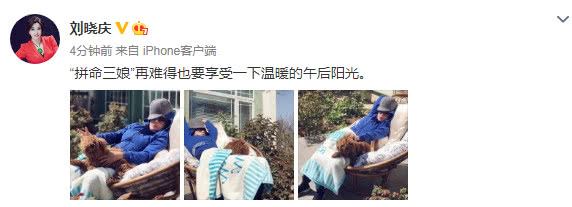 今日(4月3日),刘晓庆也在微博分享出一组照片,并附文:“拼命三娘”再难得也要享受一下温暖的午后阳光。