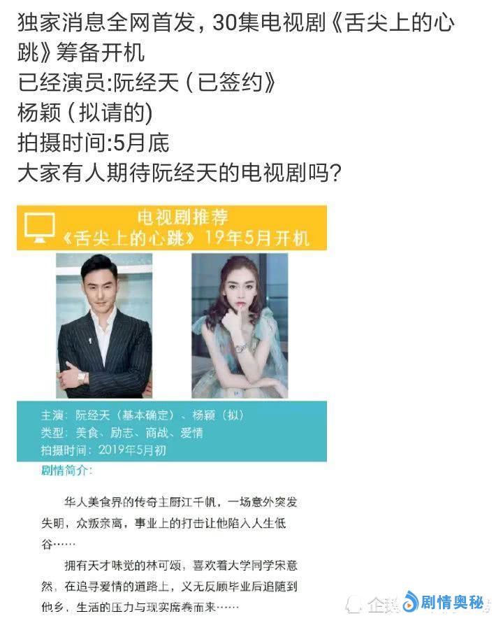 这部剧是美食商战励志爱情题材的现代剧,而女主正在邀请的演员是杨颖。相信观众们对于杨颖的印象,一般都停留在综艺《奔跑吧》当中的表现。不过如今杨颖也在积极转型,去年上线的电视剧《创业时代》还是能感受到她演技进步的。