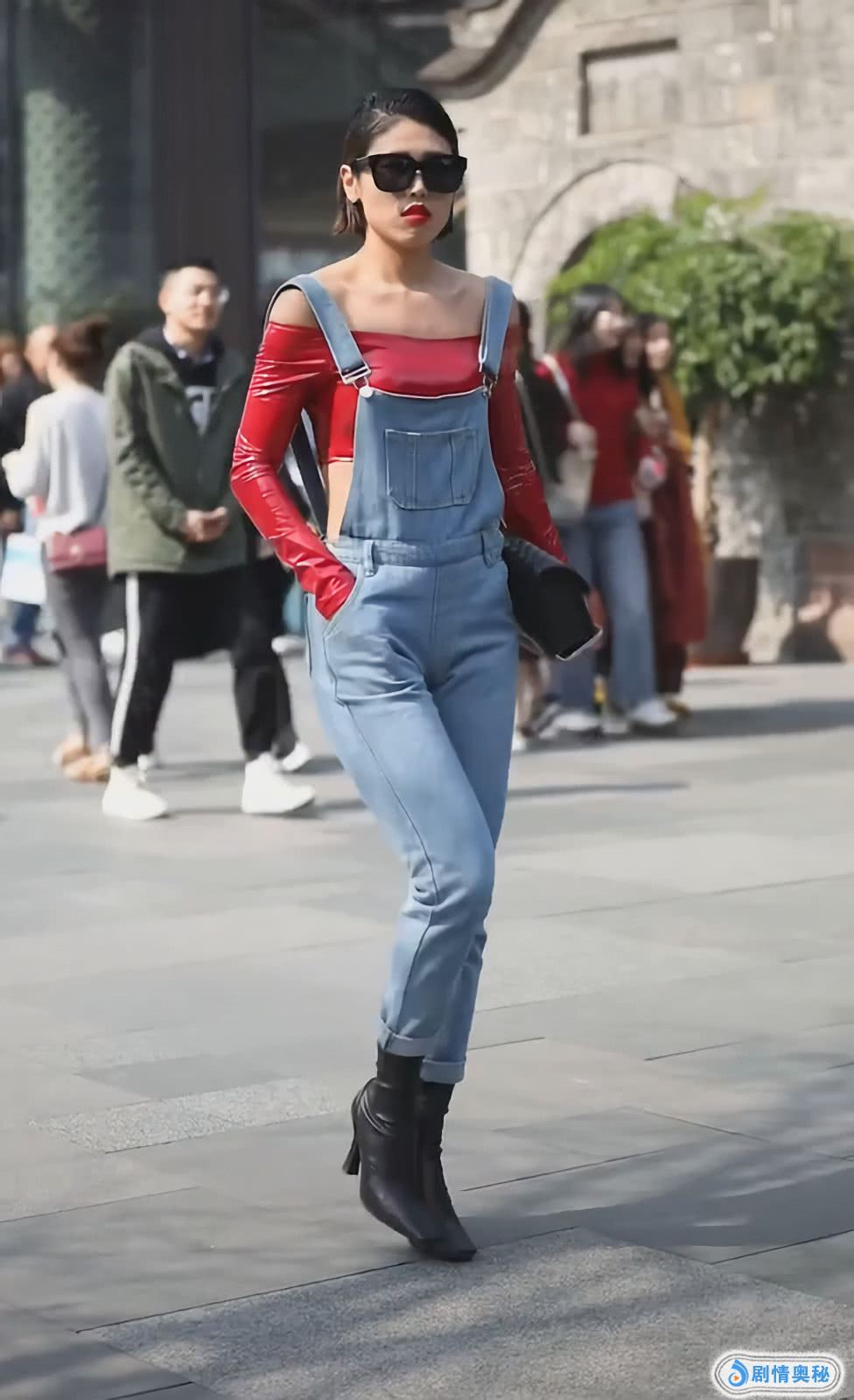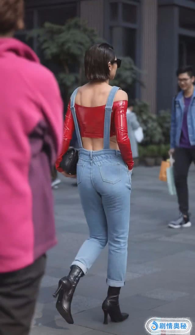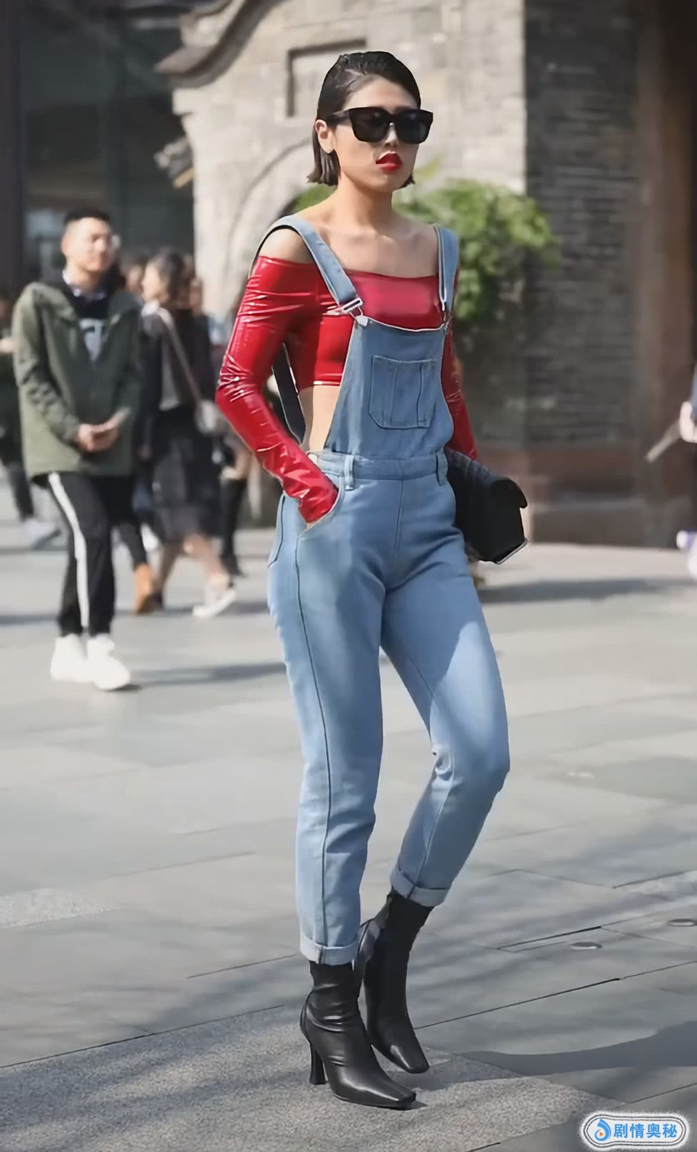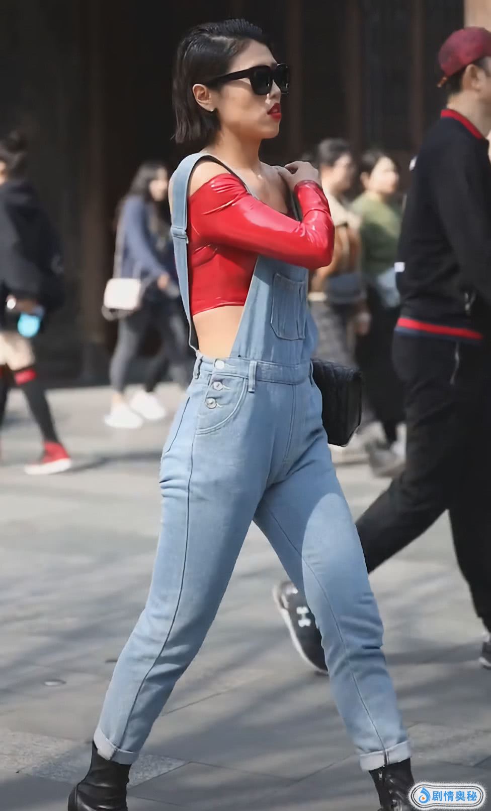 小姐姐这件上衣配背带裤,穿出强大的气场,一般会健身的小姐姐身材气场都是很强大的,主要还是因为身材比较好啊,像这位小姐姐穿的衣服就是很显身材,而且她的气质还这么好!