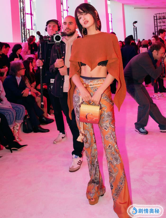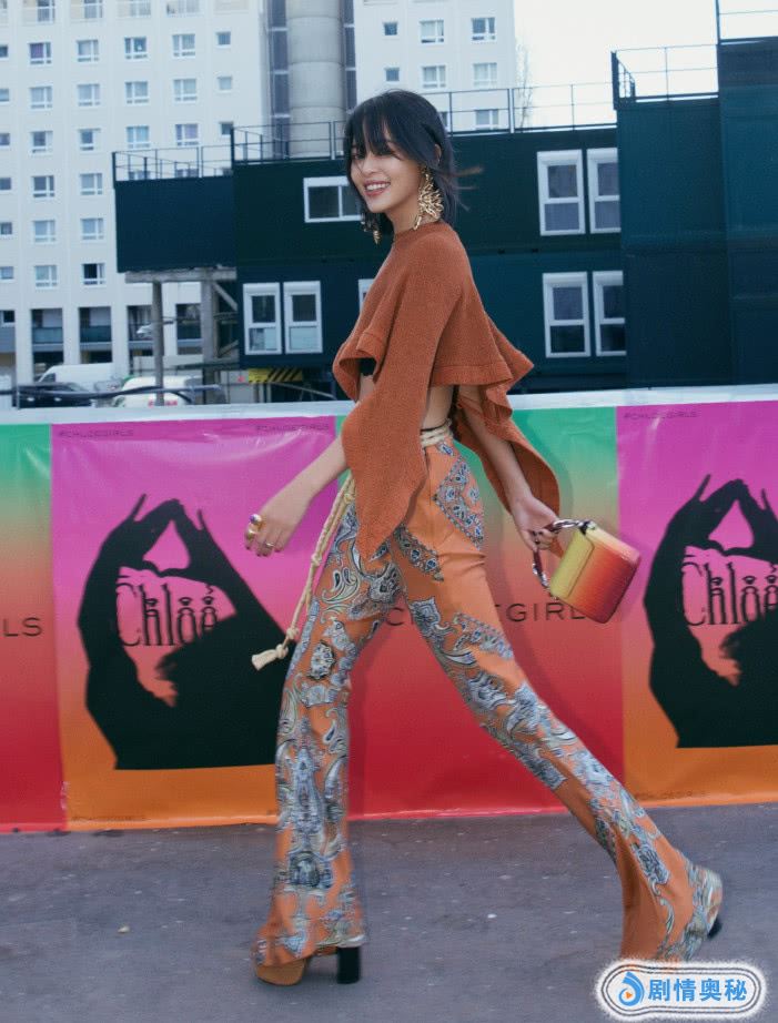 辛芷蕾这是什么神仙搭配?这是她出席时装周的打扮,她穿了一套很特别的衣服,从上面看下去,她戴着金色耳环,她的耳环是比较夸张的,增加了几分光泽感,她的耳环真的好看,戴着也是非常美的。