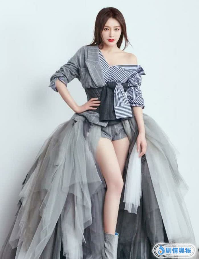 但是最具有特色的还是下面一层厚厚的纱裙,看起来纷繁复杂但是更加凸显出来一双纤细的美腿,这时候我们就能够看得出来她的双腿到底有多么细了?