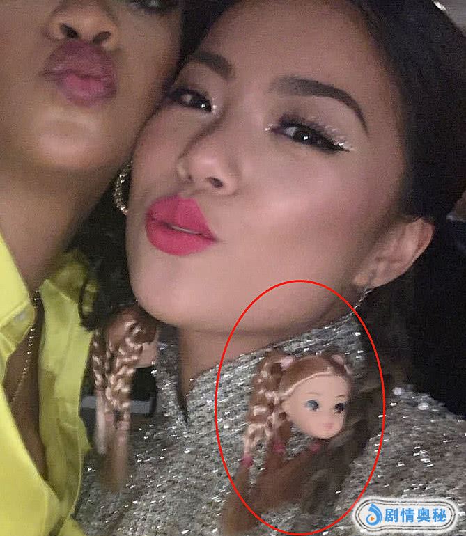 仔细一看,这幅耳环竟然是洋娃娃造型,娃娃的头上还有头发,扎成两条高高的麻花辫,很是逼真。有的人觉得把娃娃的头戴在耳朵上很恐怖,但也有人觉得这就是时尚,一般人撑不起来!不得不说,菊姐这个耳环跟她本人一样都是那么有个性呢然而,更有眼尖的网友把焦点放在了菊姐带的“手信”上。