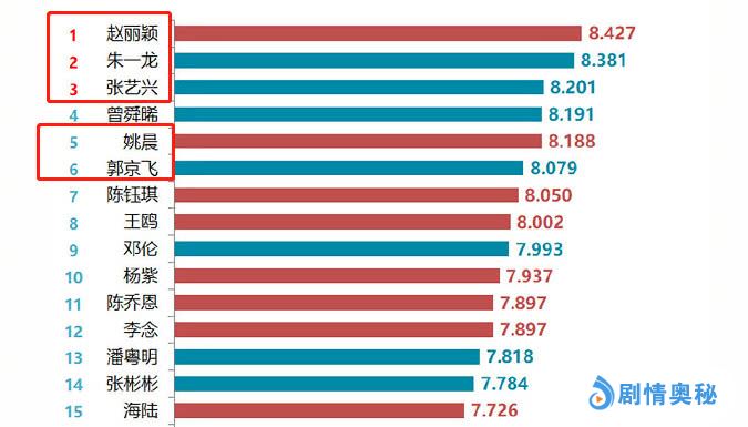 在《都挺好》这部剧中,除了倪大红,还有好几位演员都有着非常出色的演技表现,其中,姚晨和郭京飞的演技,最受观众认可,而且他们的表演也最生动、最贴近生活。但尽管如此,姚晨和郭京飞也未能进入前三,而是分别排在第5和第6,。而饰演郭京飞老婆的李念,则排在第12名。