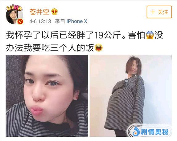 或许是因为怀孕的过程太艰辛,所以顺利怀上宝宝的苍井空,显得十分开心和喜悦,时不时会在微博上向中国粉丝透露自己孕期的近况。苍井空此前就袒露过自己从结婚到成功受孕的心路历程,后来又大方向网友透露自己怀的是双胞胎,而且都是男孩。