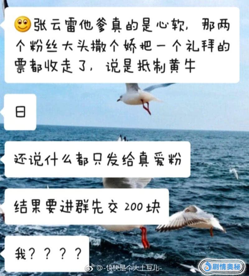 接着这名叫做“-快快是个大土豆儿- ”的网友又晒出一张聊天截图,称这几天的门票都被张云雷父亲买走,之后又拿到张云雷真爱粉儿的群内去售卖,而想加入这个群,必须要先交200元钱。
