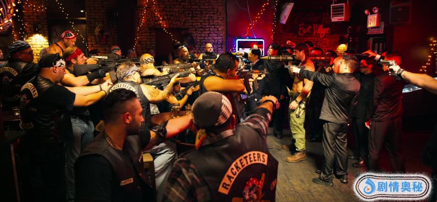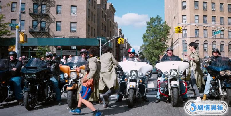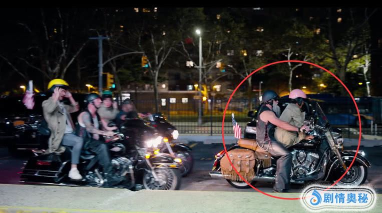 但为什么就选中的唐仁了呢?甚至在他们从酒吧出来之后,这位大哥还是放不下唐仁,在他们逃脱警察的追捕时,这些彪形大汉再次出现在他们身边,保护着他们。骑着摩托车堵在马路上不让警察过去,而剩下三个人骑着摩托车送他们离开,但是在这里我们注意到只有唐仁坐在前面,其余的都是坐在后面。