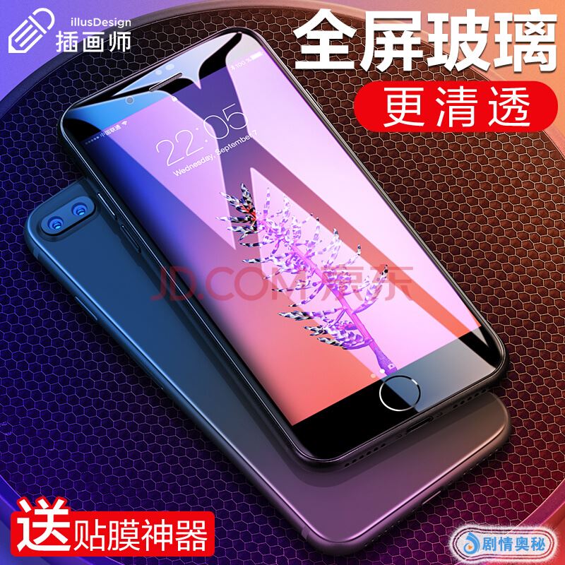 插画师 苹果6s/6 plus钢化膜 iPhone6s/6 plus钢化膜全屏 全覆盖抗蓝光手机膜 黑色(送贴膜神器)