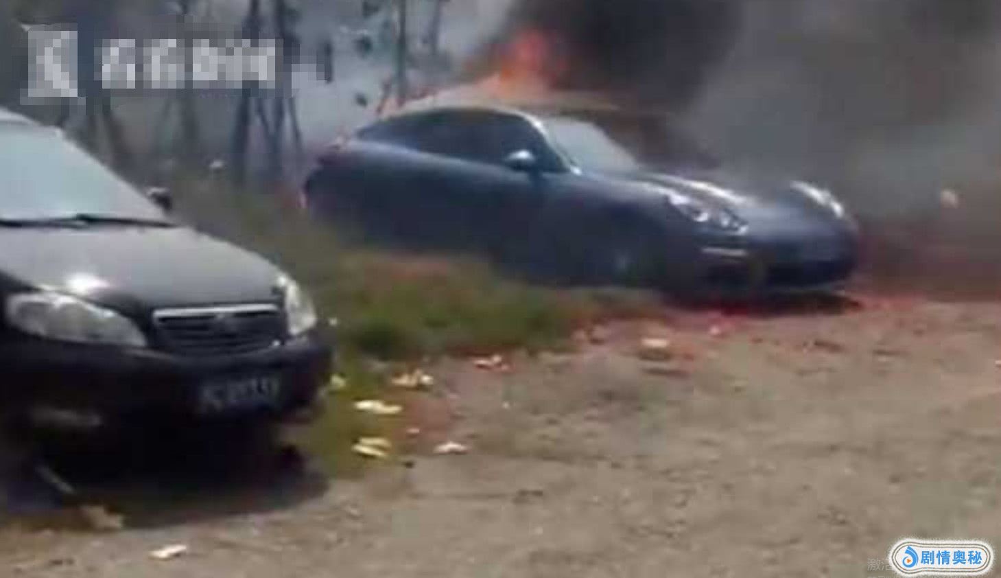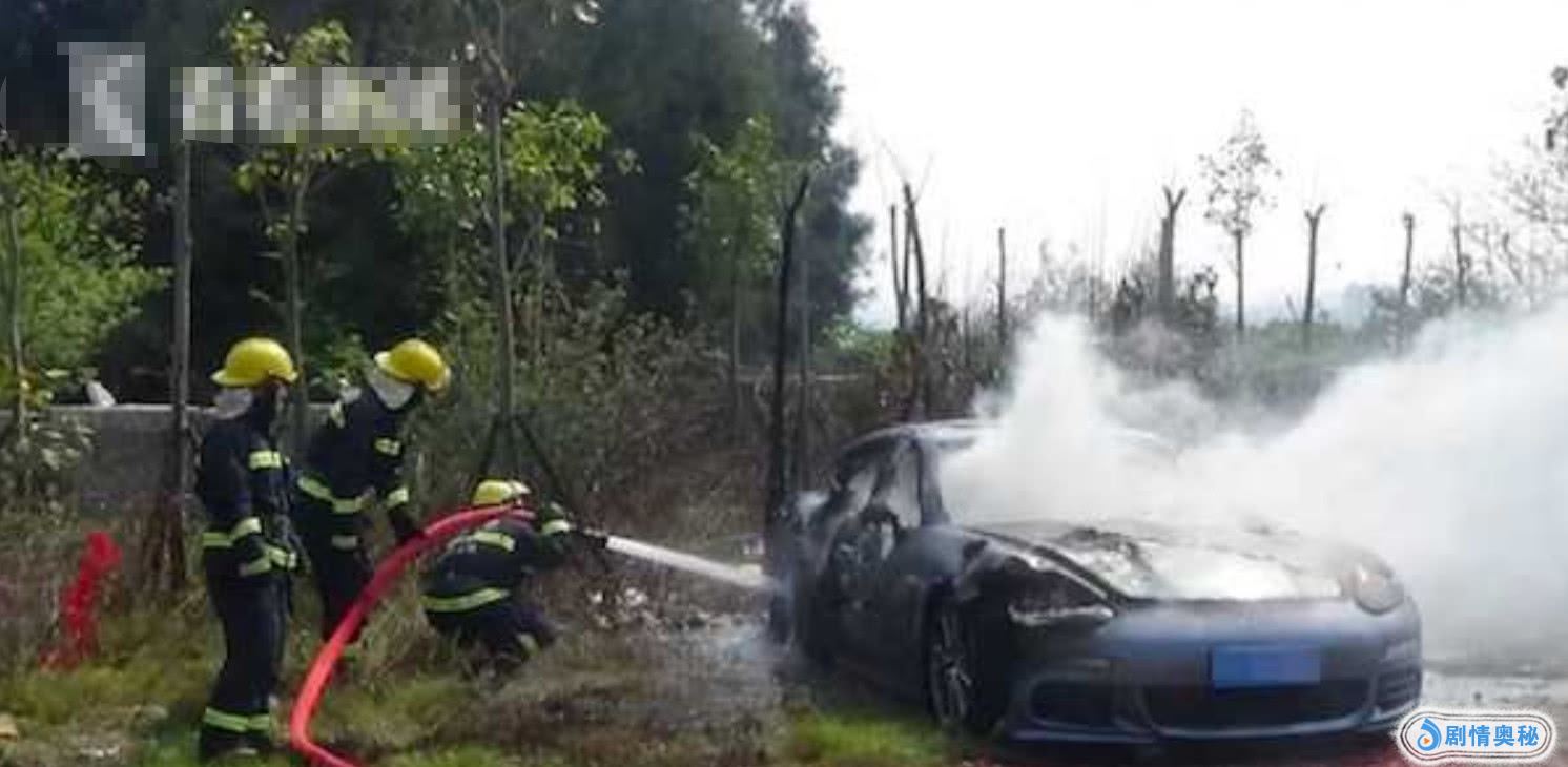 据了解,消防人员赶到事发现场后。发现这辆车停在灵堂的旁边,距离起火车子的不远处,还停着另外一辆小车。而这辆保时捷,在短时间内火势就已经蔓延到了旁边的草地。而期间,车子内部因为燃烧还不断发出声音,而车子随时会爆炸。但好在,车内并没有人员受困。
