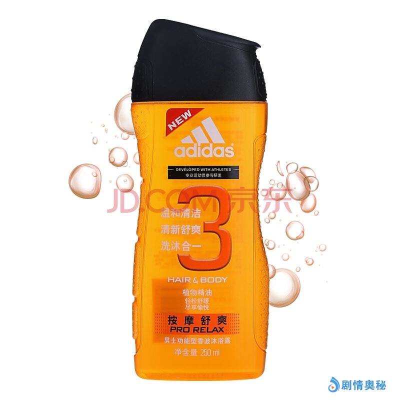 阿迪达斯(Adidas)男士按摩舒爽香波沐浴露250ml 洗发沐浴露洗沐二合一活力运动持久留香