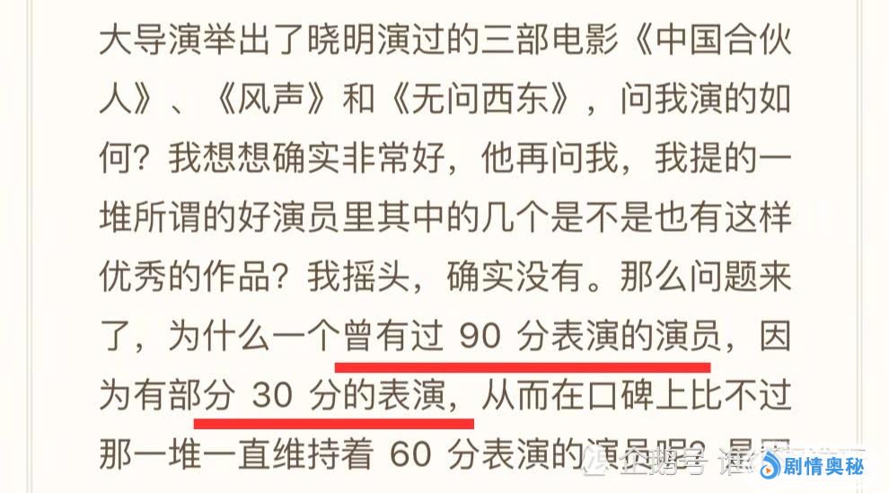 因为黄晓明饰演的霸道总裁印象,太过深入人心,所以出演《鬓边不是海棠红》的男主时,收获了一大片吐槽。有趣的是,于正曾发表长文回应质疑,却在文中表示,黄晓明曾有过90分的表演,却被30分的表演拖了后腿。这直接证实了黄晓明的发挥不稳定,不过黄晓明的90分表演,也是很有含金量的,《中国合伙人》、《无问西东》等也让黄晓明拿到了影帝。