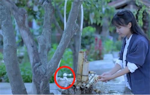 其实是因为为了画面美感,视频中很少拍水阀全景,在一次视频中无意间拍到了竹筒水阀的全景,原来旁边是有塑料管和水龙头开关的,不用的时候自然会关好,不存在“长流水”的问题,原来是大家误会她了。