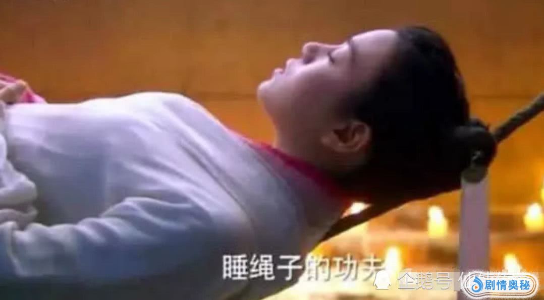 小龙女有着一个人人模仿不来的绝技,那就是睡觉以绳子代替床,这个细节点,看似简单,却很考验演员的临场发挥与制作方的处理方式,李若彤对于这一幕的诠释,可以说无人可以与其相媲美了,不管是表情,还是动作以及姿势,都是很唯美的,而且,还不显得僵硬,自然度很高。
