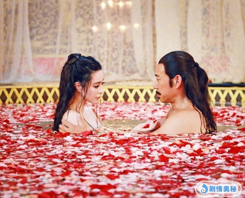 5、范冰冰,在《武媚娘传奇》里面,洗花瓣澡的样子,也给人一种很唯美的感觉,只是却多了一个人,而且还是一位男子,以至于整个画面都让人浮想联翩,自动脑补了很多画面!