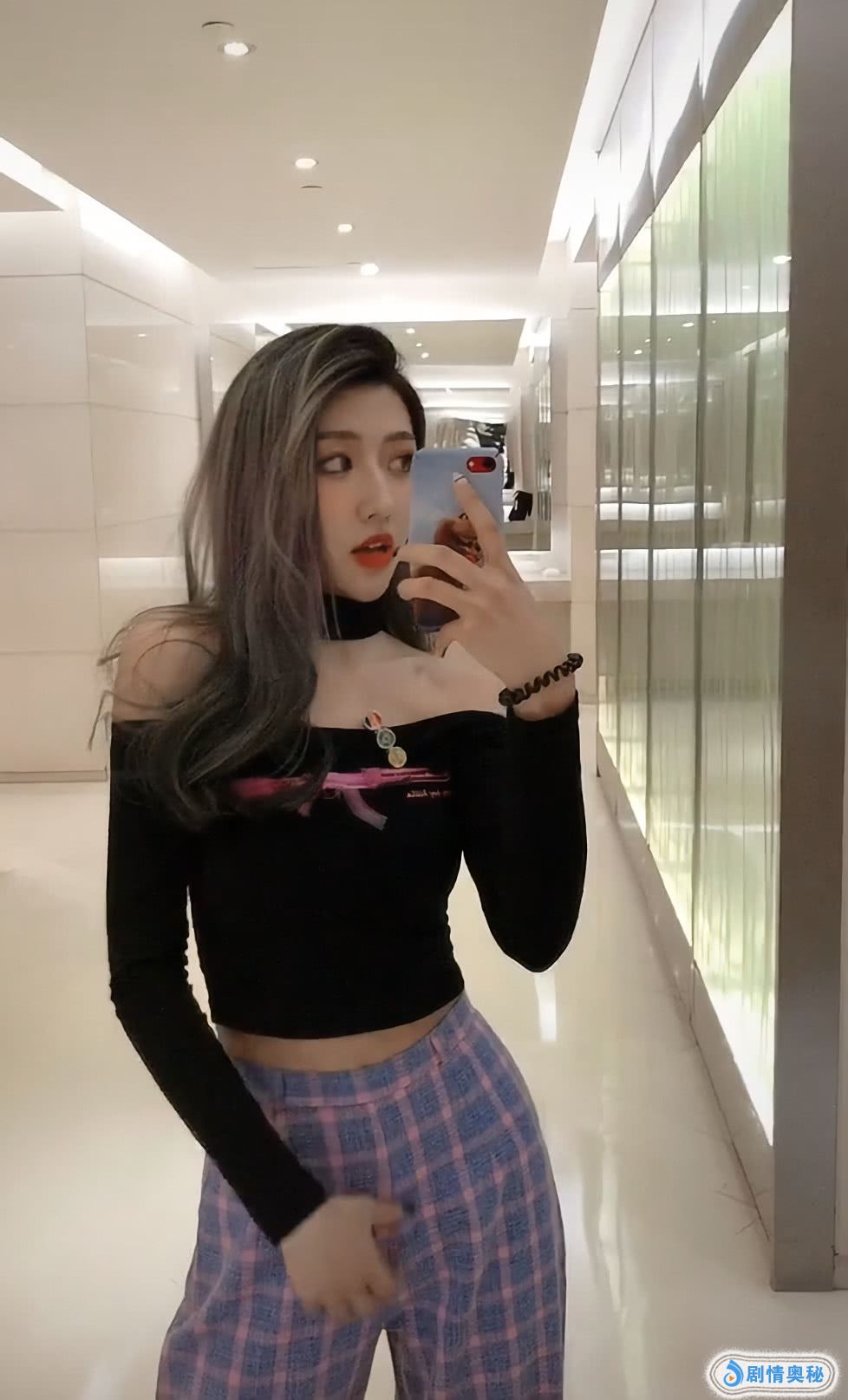 抬头看小姐姐的衣服是一字肩的,她穿上去特别美,而戴着黑色颈链,又显得有点小特别了,她的衣服还是露腰的设计,看上去就更加性感了,这衣服比较紧身,穿上去特别好看,非常时髦的一件衣服。