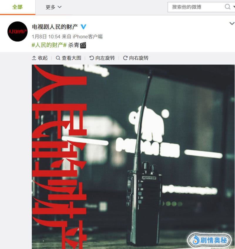 现在从各方面了解到的情况,截止到本文发布时间,《人民的财产》并没有公布开播时间,也未表示停播或撤档,其官方微博还停留在1月份的杀青时间,此后一直未曾更新。按照一般影视剧宣传的方式,此时应该不停的进行物料准备和宣传了,但是《人民的财产》官方微博却未见只言片语。