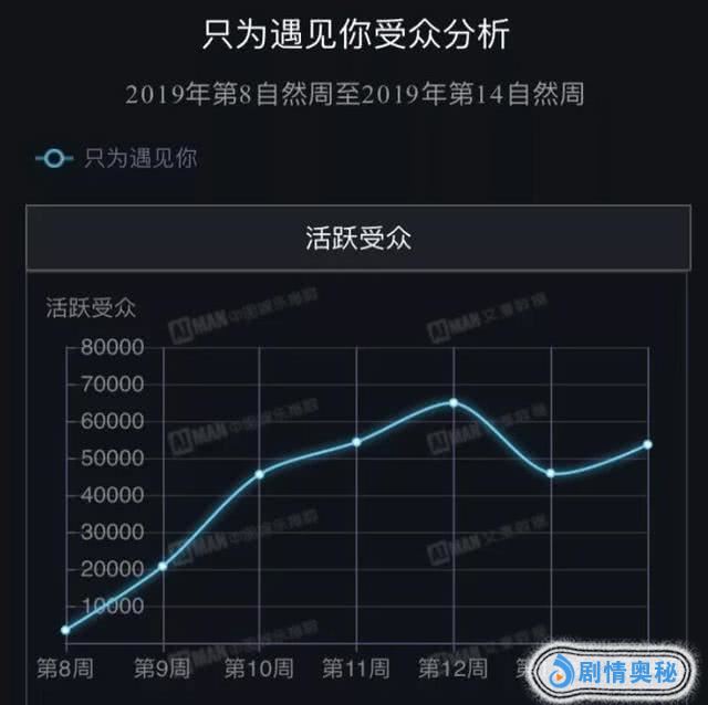 《只为遇见你》除了讲述于直和高洁甜虐交加的爱情之外,还以观众不是很熟悉的珠宝行业作为背景,透过电视剧,向观众显示传统工艺以及工匠精神,这也是吸引观众的另一要素。从数据上来看,《只为遇见你》自开播以来,受众用户几乎每周都在增加,在12周达到顶峰,活跃受众高达65000人,那时刚好也是全剧最甜的时刻,戒指夫妇频频撒狗粮,比起虐的剧情,观众喜欢高甜的多一些。