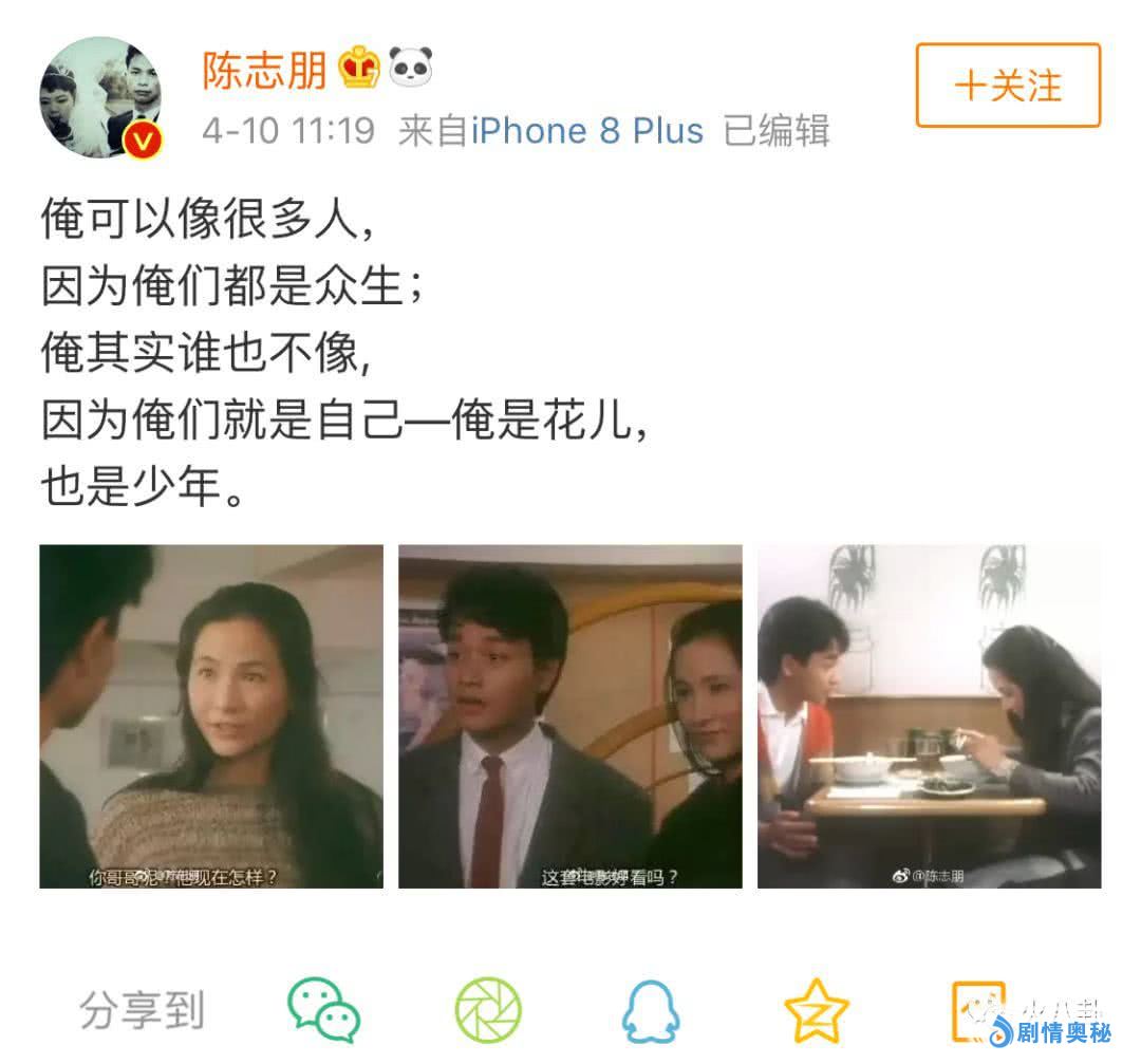 不过他本人对此倒是并不介意,在社交平台上幽默的回答了这个问题。他称,自己可以像很多人,也可以谁都不像,他是花朵,也是少年!也许在陈志朋看来,这只是他生活的一种方式,而且他本人对于网友的冷嘲热讽也很是宽容。