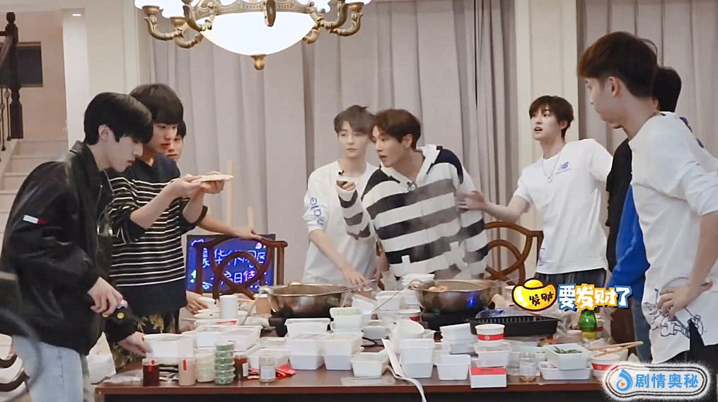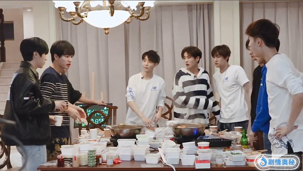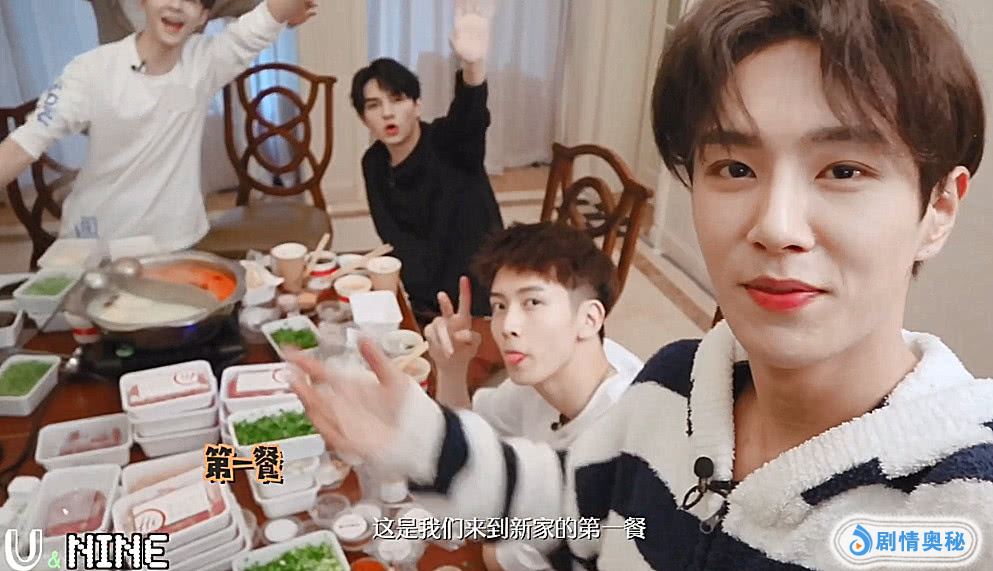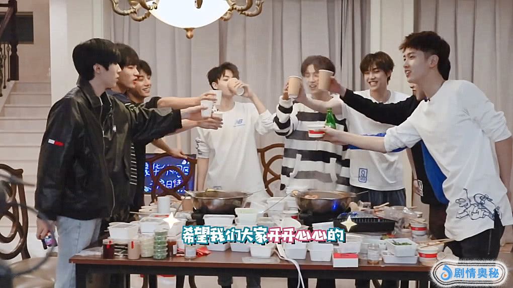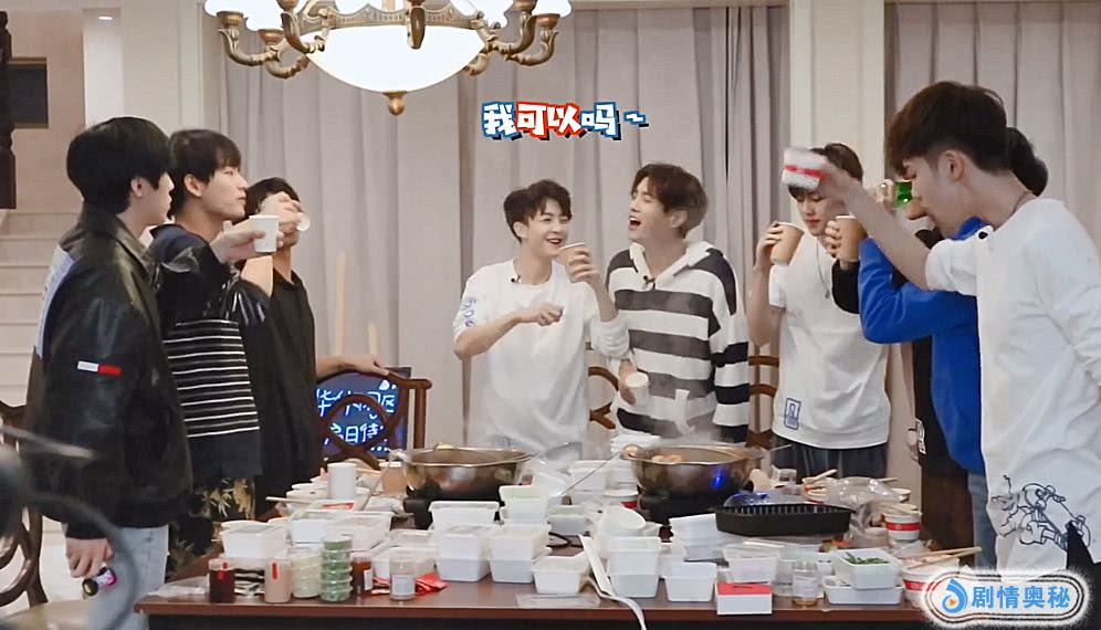 UNINE组合来到新宿舍的第一顿,就准备了火锅庆祝。在一顿埋头吃之后,大家都举起杯子,为这个值得纪念的日子干杯。李汶翰在喝完后,突然大喊了一声“我可以吗~”或许有的小伙伴会不知道这是什么梗,其实在决赛开头,剩下的22名选手都站在天台上喊话,那时候李汶翰就说这句话,果然是大家的快乐源泉,真的超有梗!