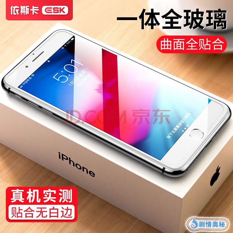 依斯卡(ESK) 苹果8 plus/7 plus钢化膜【全屏全覆盖 防爆不碎边】iphone7/8plus钢化膜 手机高清贴膜 JM94白