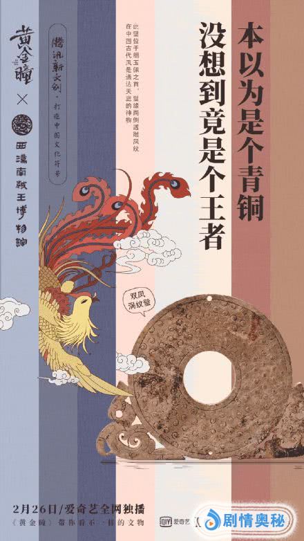 而在剧集开播之时,《黄金瞳》官微和五大博物馆便共同发起了#博物馆给了我一双黄金瞳#的话题。配合这个话题,五大博物馆都纷纷推出了自己的镇馆之宝,并配以妙趣横生的解说词。西汉南越王博物馆便将自己的双凤满纹壁与热门游戏《王者荣耀》里的称号所结合,打出一句琅琅上口的“本以为是个青铜,没想到竟是个王者。”
