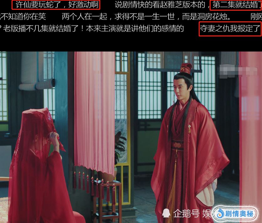 相信大家也都看了最近热播的电视剧《新白娘子传奇》,这部剧在刚开始播出的时候就受到了很多人的关注,对里面的剧情也都是非常的期待的,而在这部剧当中的演员实力也都是非常强的,有很多都是人气非常火的一些流量明星,大家对于他们的演技更是有了很多的期待。而在这一部剧当中又做了很大的改变,其中的很多剧情就遭到了网友的吐槽,就比如说小青有恋情,身份背景太强势了。大家也都知道这部剧是由张雅芝的经典版本《新白娘子传奇》做出改编的这么一部剧,在这部剧当中,很多人对于这里面的特效都觉得非常的假,而且这也是这部剧当中最大的槽点之一。那么接下来小编就要为大家分享的是,新白娘子:白素贞与许仙成亲时,千万不要开弹幕,不然你会疯掉!