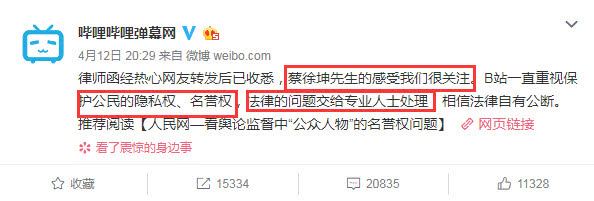 关于B站引用人民网评论,回应蔡徐坤律师函的事情,大家怎么看?
