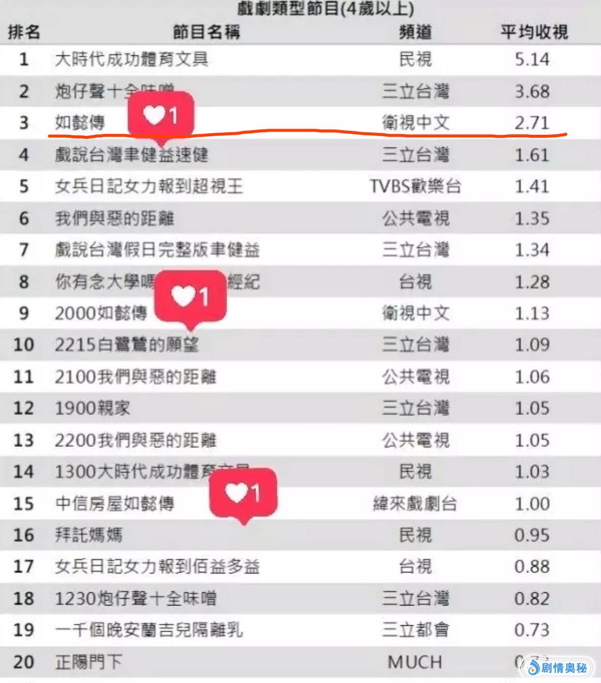 最近台湾纬来戏剧台开始重播《如懿传》,即使是重播的收视率也破1,相关记录片更是高达了1.86。后劲极强的《如懿传》在台收视差点超过当年的《甄嬛传》,不过还是差一点点啦。