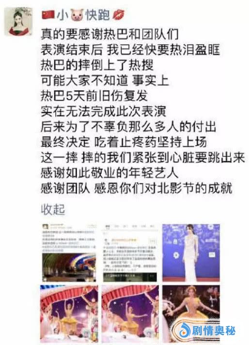 昨天,北京电影节如约开幕,很多女星都打扮的光鲜亮丽的参加节目,而热巴也为这场开幕式奉献了舞蹈,但是昨天晚上,却因为退场时候发生意外摔倒,而上了微博热搜,引起了大家的关注和热议!