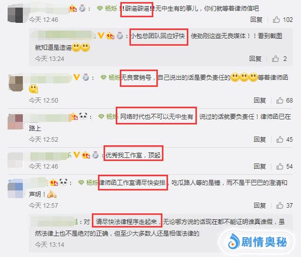 粉丝纷纷表态,夸奖小包总团队回应好快!律师函工作室请尽快安排!